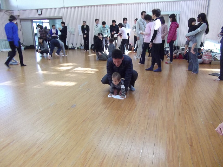 広い板張りの体育館で、十分身体を動かすことを体験していただきました。