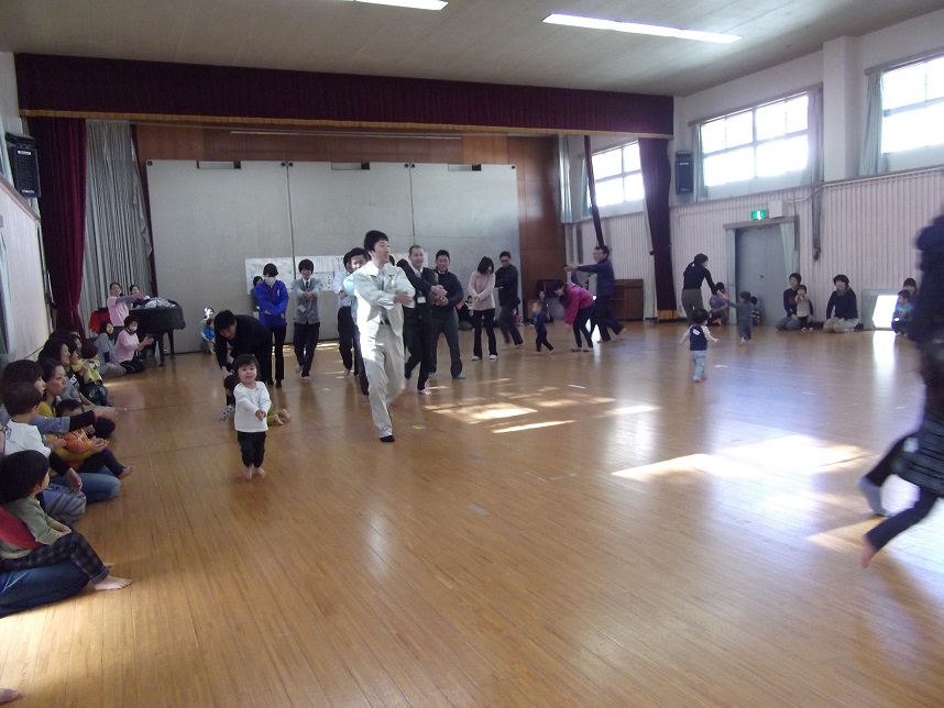32家族参加の「まんまリズムdeあそぼ」の後半のリズムから参加。